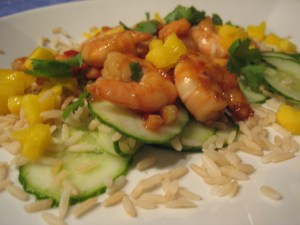 Scampi med chili og sitrongress er kjempegodt – her med agurksalat!