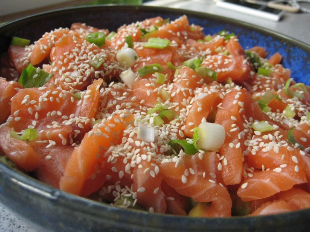 Denne oppskriften fant jeg i siste A-magasinet og oppskriften finner du også på Din mat. Dette var suksess for store og små sushi-elskere som ikke har lagd lagd sushi hjemme før – men dette var enkelt; kok ris, del opp laks og grønnsaker – legg alt i en bolle – volila! NAM!