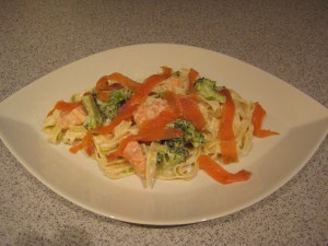 Denne lakseretten med nudler og asiatisk smak er supergod og veldig enkel å lage! Anbefales 🙂